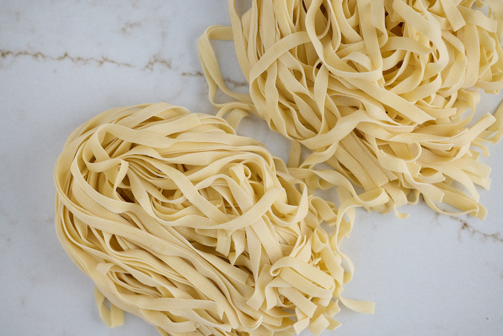 Don't be fooled by the name, Skinnies are not a low-calorie pasta. This long, strand-like pasta is often served al dente with a creamy, sauce, such as Alfredo or Niçoise. It works well with protein-based meals where chicken or another meat is a featured ingredient. You may know Skinnies as fettuccine, the popular pasta that originated in Roman and Tuscan cuisine.