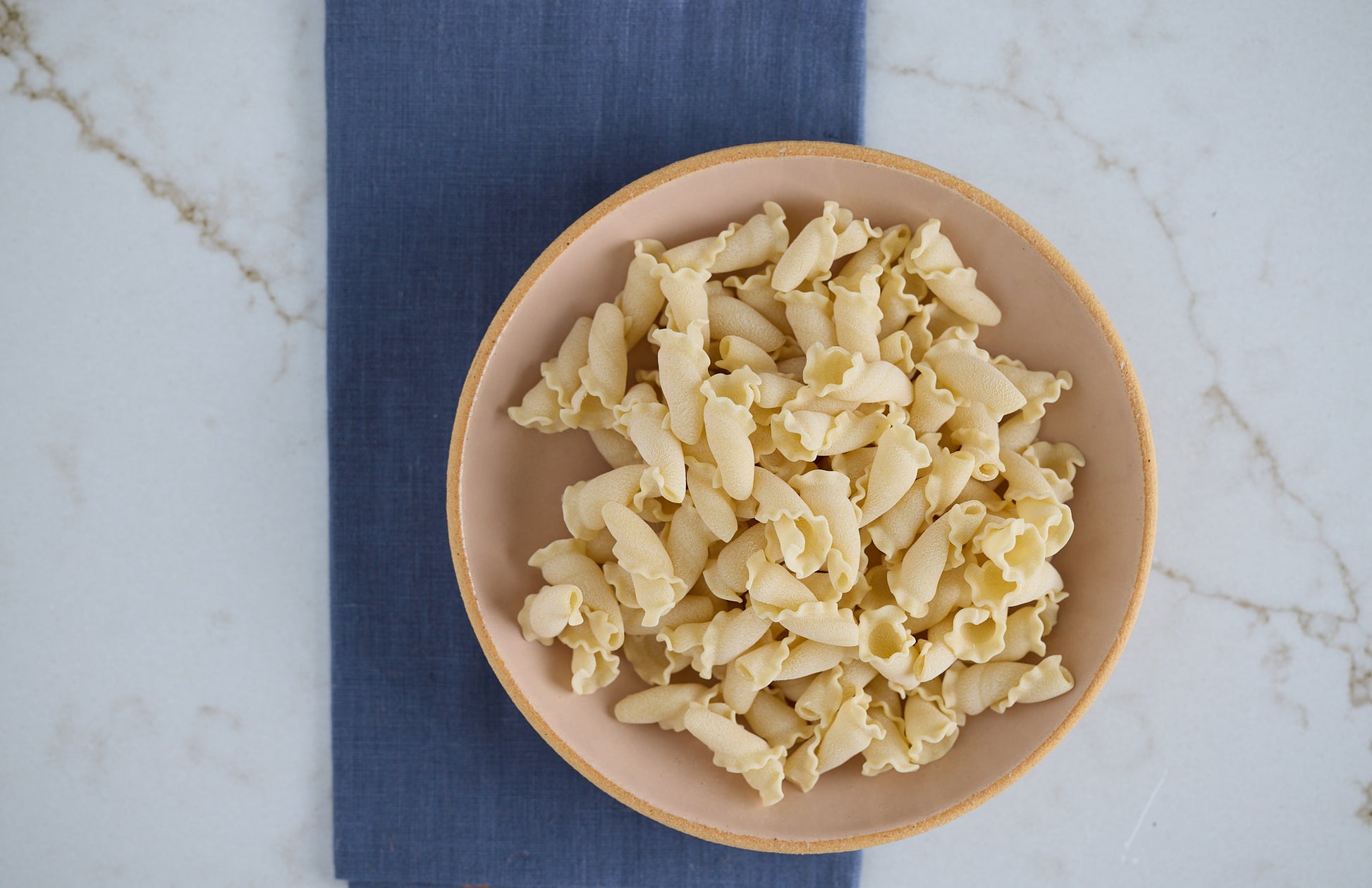 Lilies are a small, fluted dried pasta, rolled in the shape of a cone or flower with ruffled edges. Aficionados often call this pasta gigli. The word gigli is Italian for "lily". This exquisite pasta originated in Tuscany where the lily flower is the national emblem of Florence. Lilies pair well with thicker sauces and works very well in a casserole.