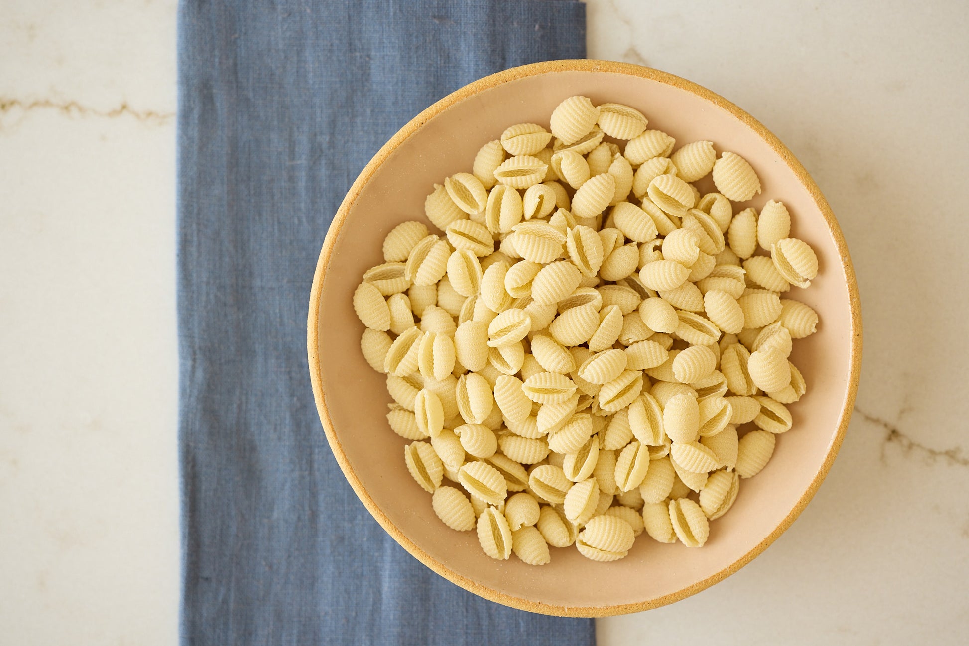 Inspired by life on an island, Seashells are a traditional pasta shape commonly known as gnocchetti sardi. Originating from the Italian island of Sardinia, Seashells are commonly called gnocchetti because they look very much like “little gnocchi”. In Sardinia, Seashells are often served for special occasions or Sunday family dinners. They are typically served with tomato-based meat sauces, but can also be enjoyed with a variety of sauces, such as creamy cheese or pesto sauce. The ridged surface of these little Seashells are perfect for tomato sauces, ragus, or bolognese.