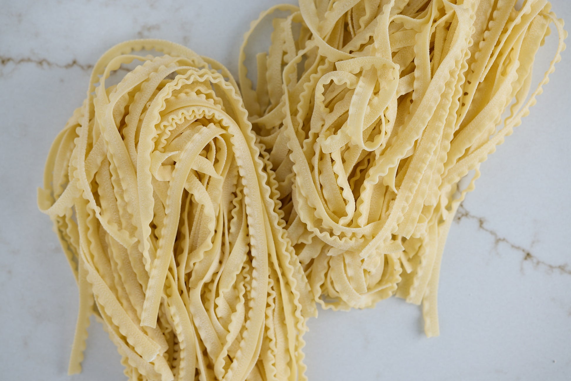 Wavys are short pasta ribbons with ruffles on one side. This type of pasta, commonly known as tripoline, may have originated from the Campania region. According to popular tradition, it was created in honor of King Victor Emmanuel II in Napoli. Wavys are excellent for pasta dishes with meat ragùs. The recommended sauces should definitely include those with strong, marked flavors, such as sauces prepared with game and offal.